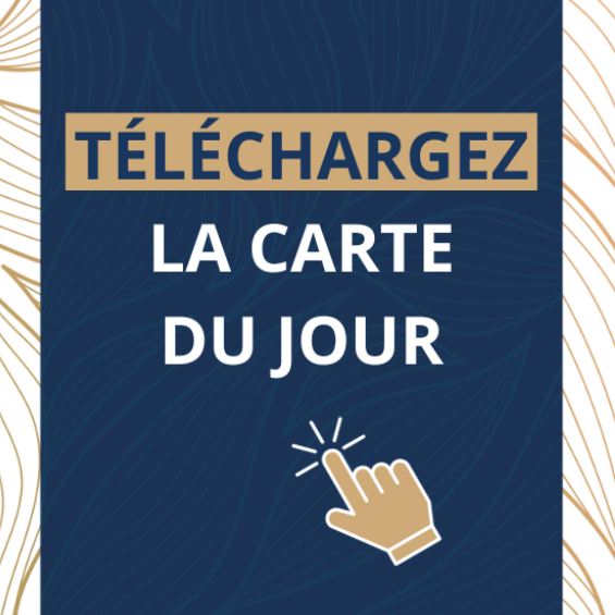 La carte change plusieurs fois par semaine selon l'inspiration du Chef, qui enchantera vos papilles avec ses savoureuses recettes confectionnées à base de produits frais et de saison.